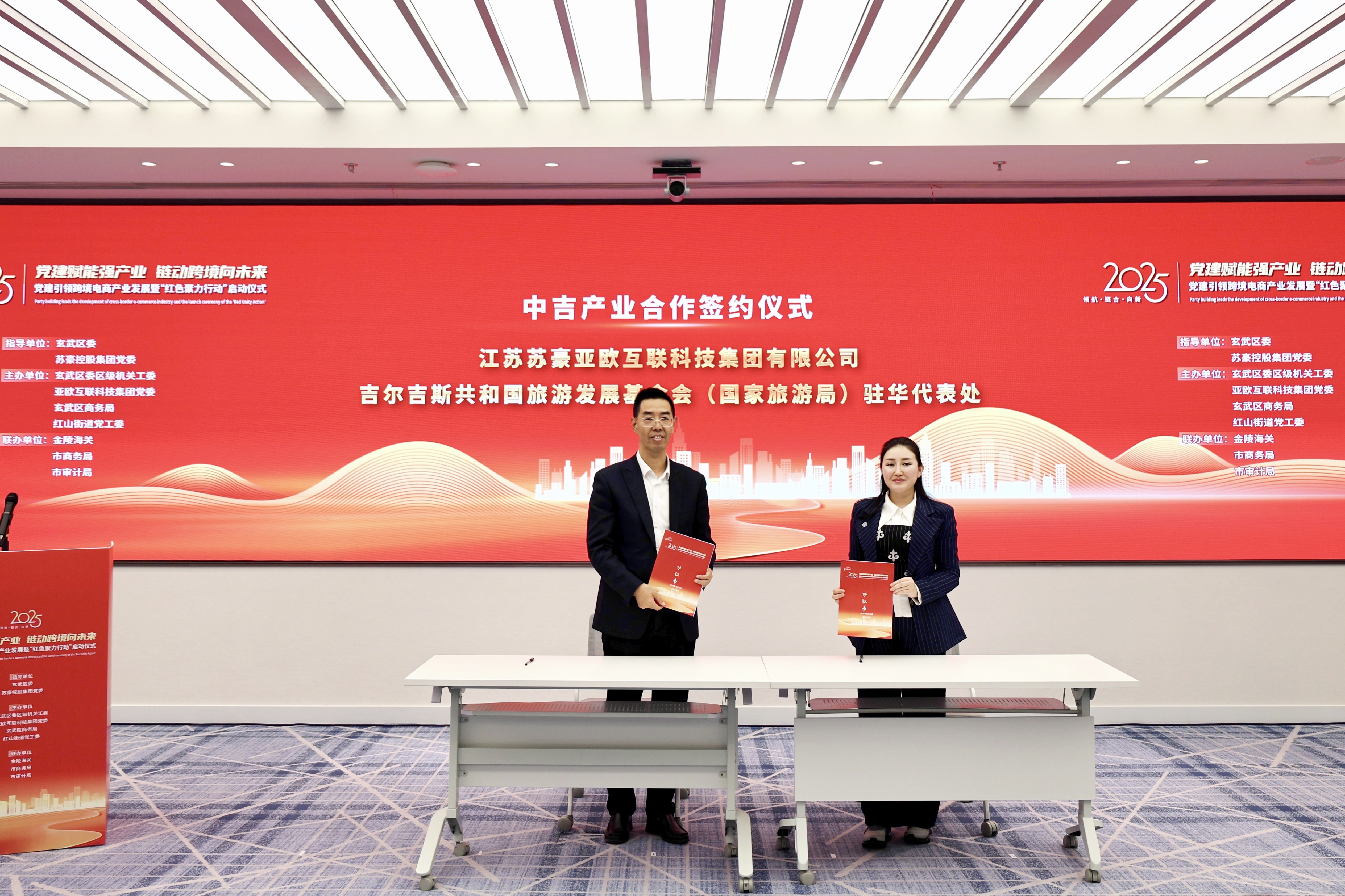 活動(dòng)現(xiàn)場,江蘇蘇豪亞歐互聯(lián)科技集團(tuán)有限公司與吉爾吉斯共和國旅游發(fā)展基金會駐華代表處簽署中吉產(chǎn)業(yè)合作協(xié)議,標(biāo)志著雙方跨境產(chǎn)業(yè)協(xié)作進(jìn)入新階段。同時(shí),蘇貿(mào)環(huán)亞(江蘇)進(jìn)出口有限公司、中國郵政集團(tuán)有限公司南京市分公司、南京金箔集團(tuán)寶玉工藝有限公司3家企業(yè)正式簽約入駐中國-中亞貿(mào)易暢通合作平臺,攜手共拓跨境業(yè)務(wù)版圖,為平臺發(fā)展注入新力量。