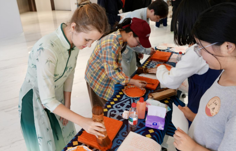 活動(dòng)現(xiàn)場特別設(shè)置投壺游戲、香囊制作、雕版拓印等非遺體驗(yàn)環(huán)節(jié),讓中亞青年在指尖與非遺技藝的觸碰中,探尋工藝背后的文化內(nèi)涵,也讓中華優(yōu)秀傳統(tǒng)文化更可感可知。這種沉浸式互動(dòng)不僅豐富了交流形式,更以文化共享消融語言與地域隔閡,真正實(shí)現(xiàn)“以手傳心、以藝通心”,彰顯民心相通在區(qū)域合作中的深層價(jià)值。