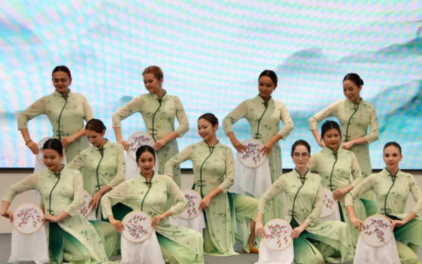 隨后舉辦了精彩的中國-中亞文藝匯演,由南京多所高校聯(lián)袂呈現(xiàn)的節(jié)目匠心獨(dú)運(yùn),既有中國傳統(tǒng)藝術(shù)的創(chuàng)新表達(dá),又融入了中亞文化元素。古典舞《織錦繡芳華》以絲路意象聯(lián)結(jié)古今,中國民樂《不染》與廣陵琴派《酒狂》奏響千年回響;舞蹈《雨巷》以柔美的身段和靈動(dòng)的油紙傘,將江南水鄉(xiāng)的詩意韻味演繹得淋漓盡致;中亞舞蹈《Bilezik》與中文合唱《茉莉花》交相輝映,展現(xiàn)文明對(duì)話的生動(dòng)實(shí)踐;詩歌互動(dòng)環(huán)節(jié)及中國朝代服飾走秀,則通過中國特色文化符號(hào),深化中亞青年對(duì)中華文化的認(rèn)知。整場演出通過藝術(shù)語言搭建起跨越國界的情感橋梁,讓兩地青年在美的享受中感受到文化互鑒的魅力。