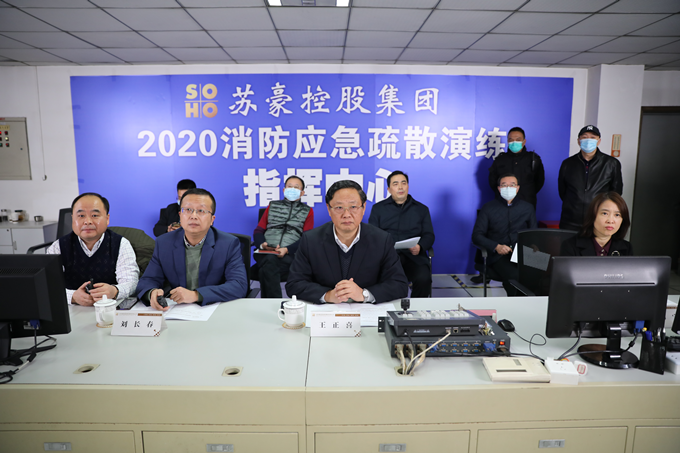 12月18日下午,蘇豪控股集團組織開展2020年消防應急疏散演練,集團黨委書記、董事長王正喜擔任此次演練總指揮。來自集團總部、有關下屬子公司共600多名員工參加演練。下午3點30