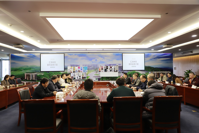 12月3日下午,江蘇匯鴻國際集團股份有限公司副總裁丁海攜匯鴻中天控股有限公司相關負責人到訪蘇豪控股集團,與集團子企業開展面料業務推介交流會。集團張朝武副總裁參加會議。