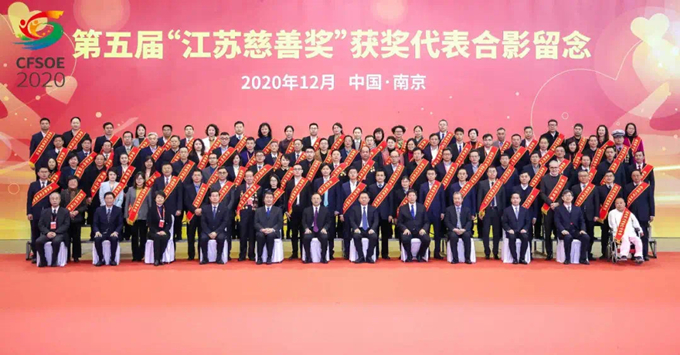 12月1日,江蘇省政府隆重表彰第五屆“江蘇慈善獎”獲得者,授予30家單位、20家慈善組織、30名個人、20個慈善項目“江蘇慈善獎”稱號,省長吳政隆親切接見獲獎單位代表和個人,江蘇